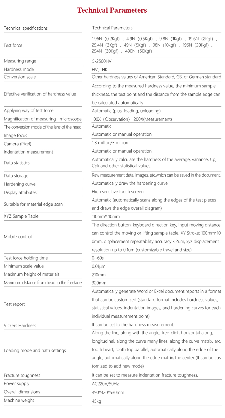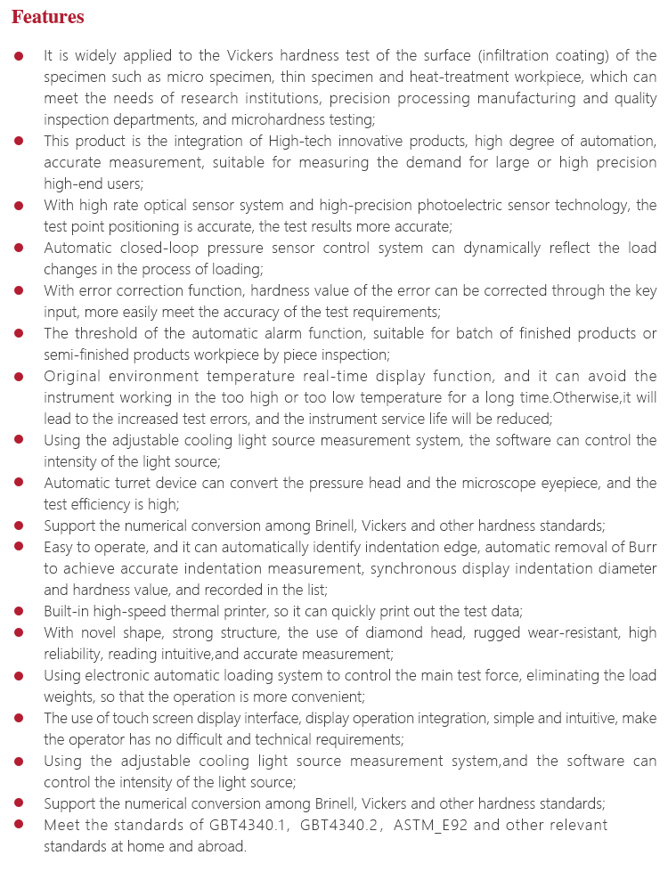 Meet the standards of GBT4340.1GBT4340.2ASTM_E92 and other relevant standards at home and abroad.