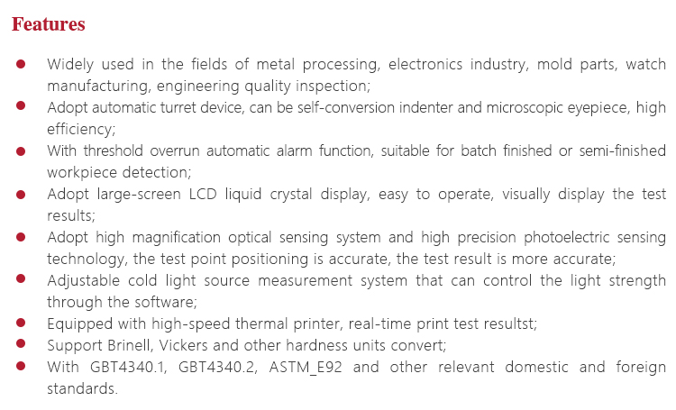 | Conversion scale | HRA、HRB、HRC、HRD、HR15N、HR30N、HR45N、 HR15T、HR30T、HR45T、HV、HK、HBW |