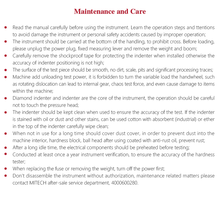 Don’t disassemble the instrument without authorization, maintenance related matters please contact MITECH after-sale service department, 4000600280
